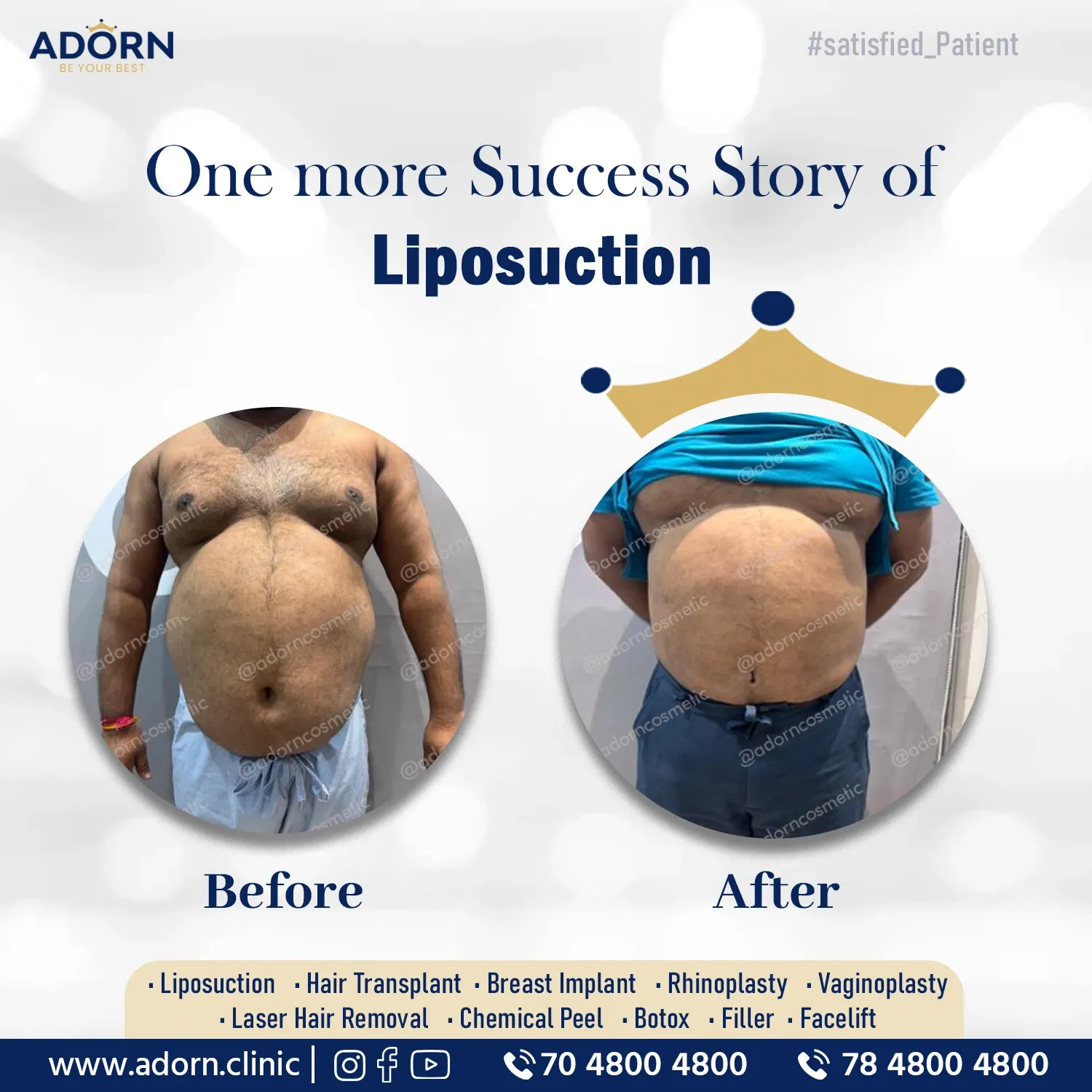 Achieve your dream body with expert liposuction at ADORN Aesthetic Clinic by Dr. Harsh Amin.