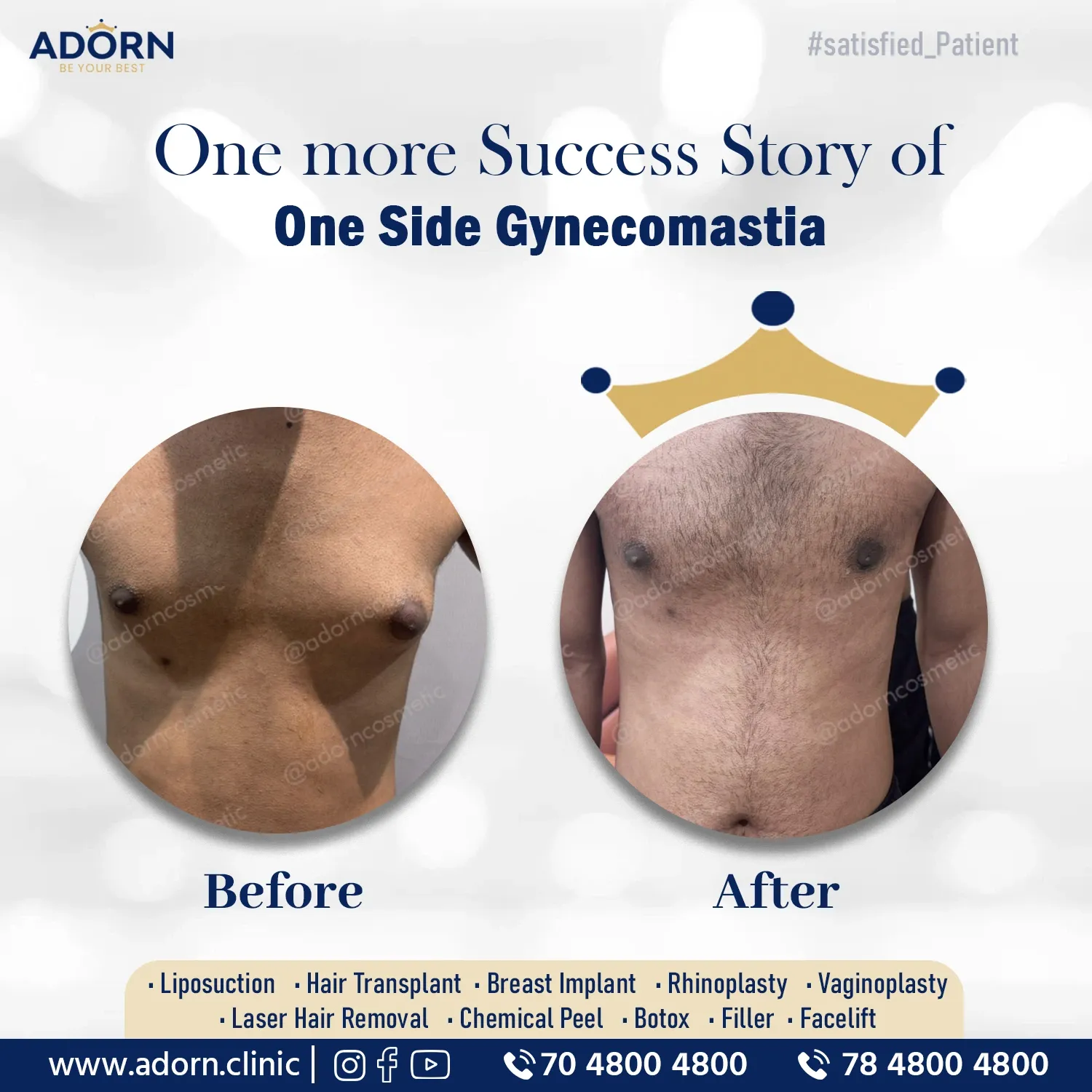 With happy clients all across the world ADORN Cosmetic Surgery Clinic is considered the best for Gynecomastia Surgery / Male Breast Reduction Surgery in Gujarat.