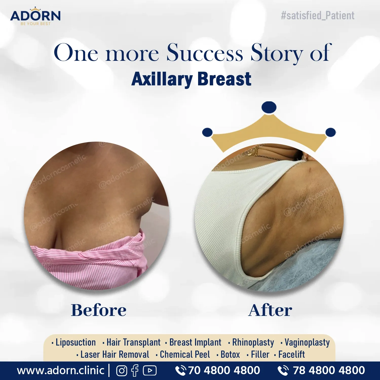 ⭐ “The ADORN team made me feel completely comfortable. My shoulder lump is gone, and the scar is practically invisible.” — Sneha M., Ahmedabad