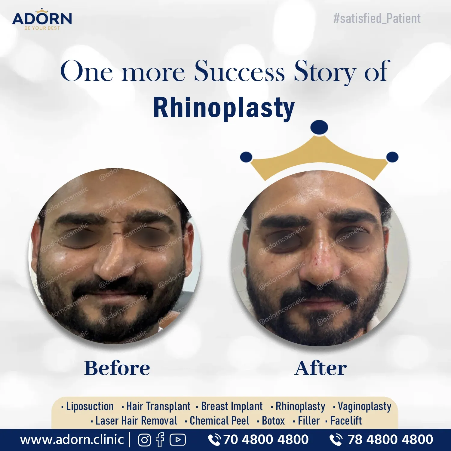 ADORN has delivered finest SEPTOPLASTY - Nose Block results to Clients not only from Gujarat like Rajkot Surat Baroda Mehsana but also from various cities of India like Mumbai Delhi Jaipur Bagluru Indore and from countries like UK USA Australia Kenya Dubai.
